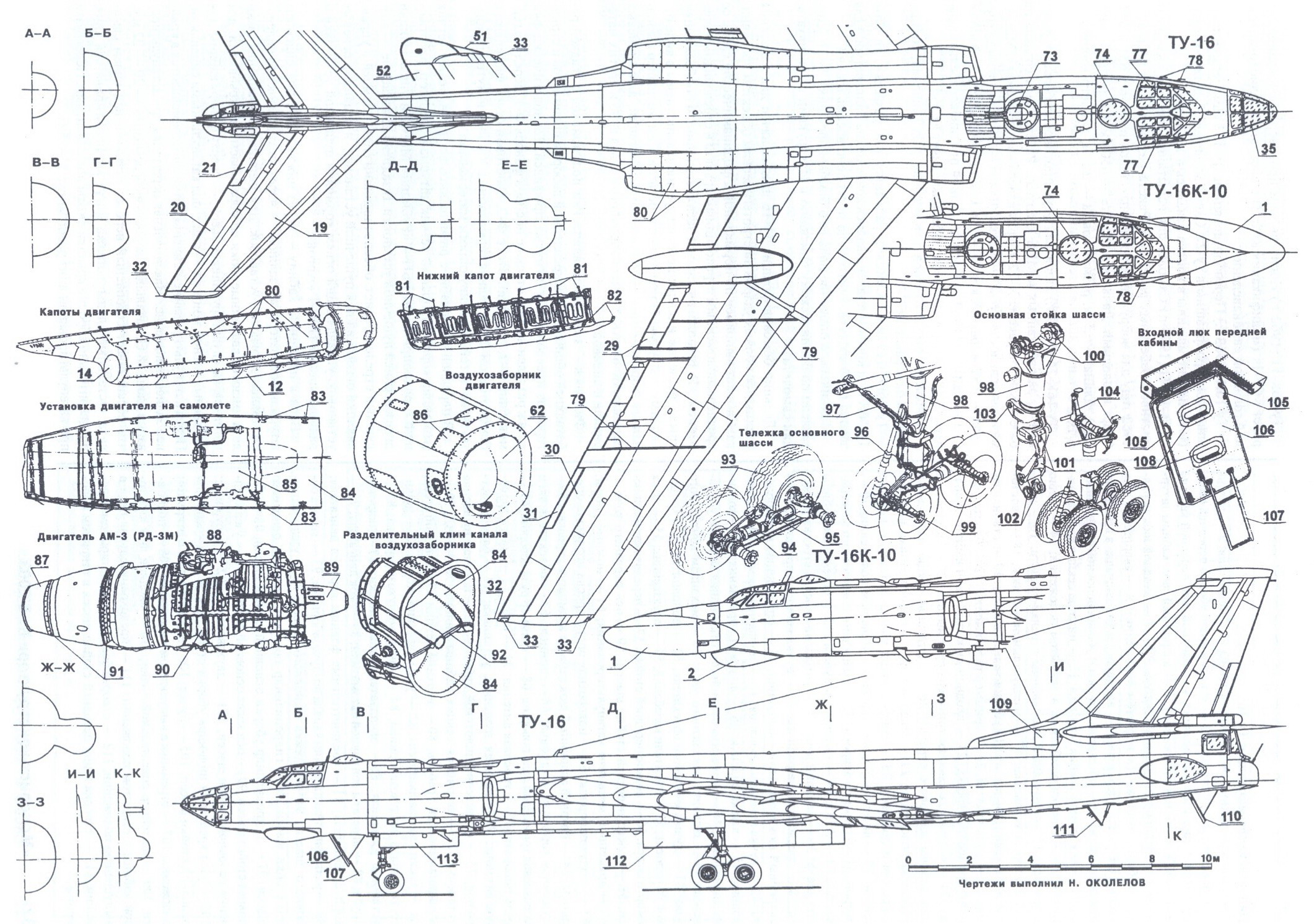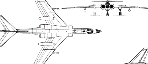 | A Tu-16 szuperszonikus bombázó fejlesztési projektje négy VD-7 AM-13 hajtóművel. |