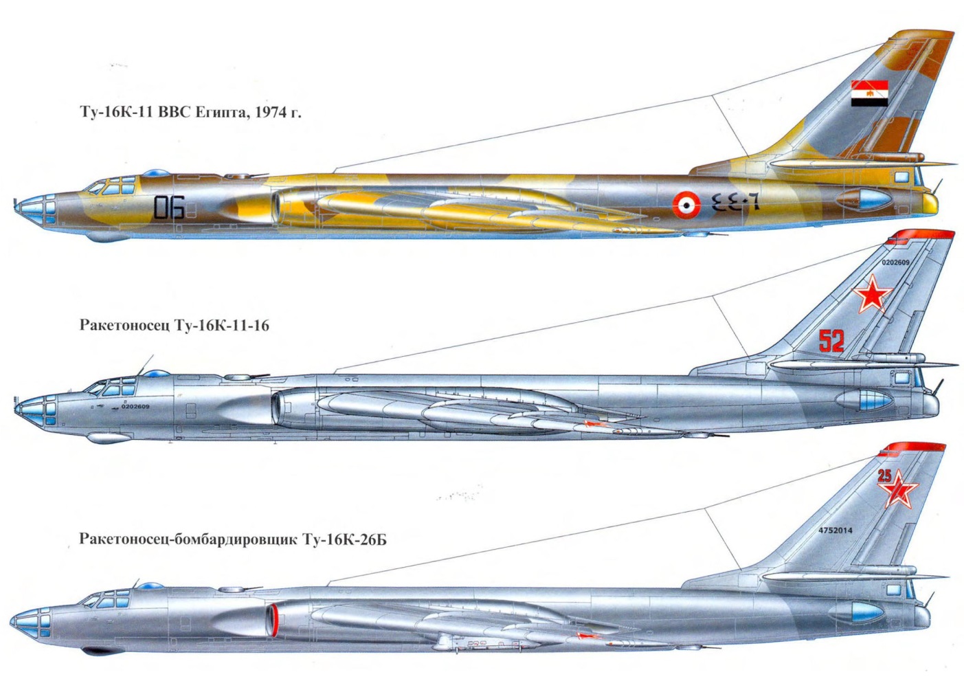 Tu-16K-26 – a K-26 komplexumot hordozza (két KSR-5 rakéta), megtartva a KSR-2 és 11 rakéta képességét. 1969-től használták. Hasonló repülőgépeket Tu-16KSR-2-5-11 vagy Tu-16KSR-2-5 néven jelöltek (nincs KSR-11 képesség). Több mint 240 Tu-16 szállíthatta a K-26 komplexumot. |