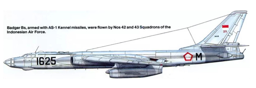 | Tu-16 Badger "B" AS-1 Kennel rakétával, az Indonéz légierő 42. és 43. századában |