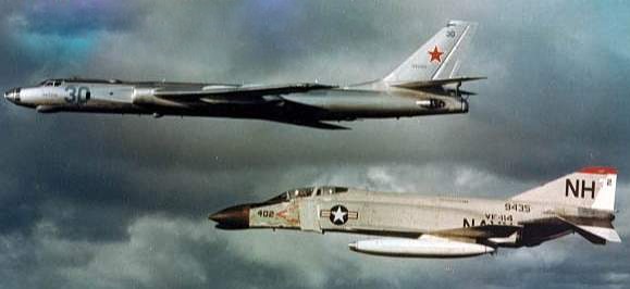 | A VF-114 F-4 Phantom gépe kísér egy szovjet Tu-16 Badgert |