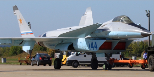 | Fotó: MiG-1.44 első repülése előtt, 2000 február 28.-án. Már ekkor 600 km/h sebességre gyorsították. | Forrás:AviaDejaVu |